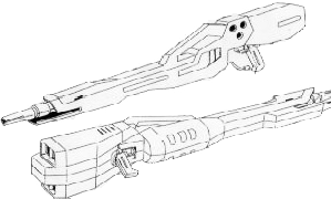 Armamento: Pistolas x2 (en la cabeza), ametralladoras x2 (en los hombros), rifle buster (en mano/montado en el escudo en Modo Ave), escudo (brazo izquierdo/espalda en Modo Ave), sable de rayo x2 (en mano/escudo)